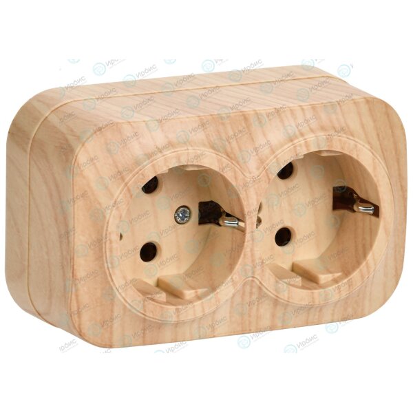 GLORY Розетка 2-местная для открытой установки с заземлением без защитных шторок 16А РС22-3-ХС сосна