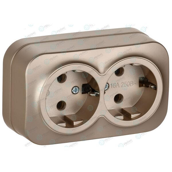 GLORY Розетка 2-местная для открытой установки с заземлением без защитных шторок 16А РС22-3-ХШм шамп