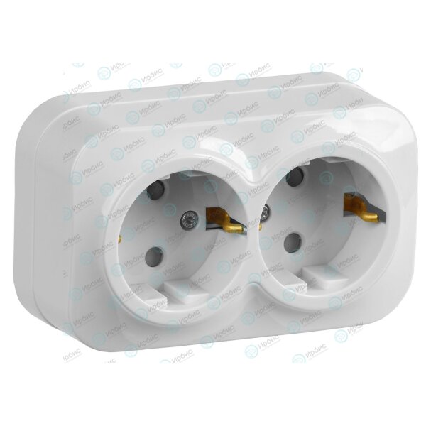 GLORY Розетка 2-местная для открытой установки с заземлением с защитными шторками 16А РСш22-3-ХБ бел