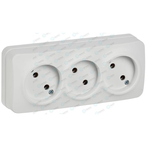 GLORY Розетка 3-местная для открытой установки без заземления без защитных шторок 10А РС23-2-ХБм бел