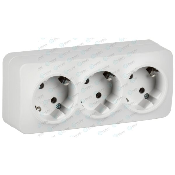 GLORY Розетка 3-местная для открытой установки с заземлением без защитных шторок 16А РС23-3-ХБм белы