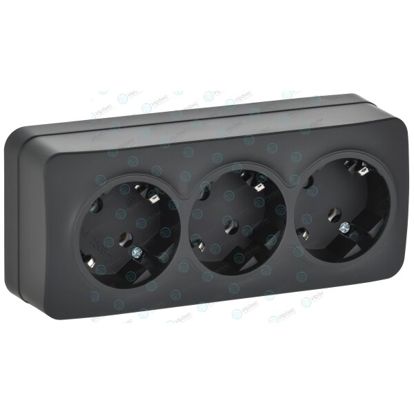 GLORY Розетка 3-местная для открытой установки с заземлением без защитных шторок 16А РС23-3-ХЧм черн