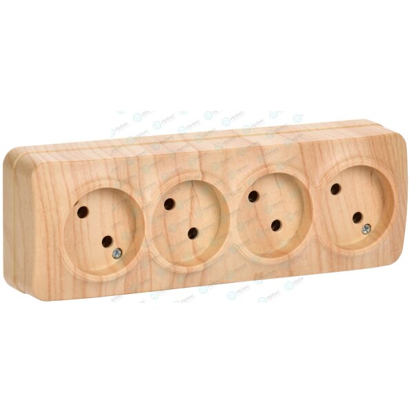 GLORY Розетка 4-местная для открытой установки без заземления без защитных шторок 10А РС24-2-ХС сосн