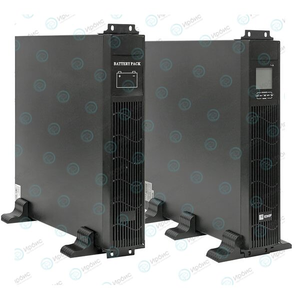 ИБП состоит из 2 отдельных модулей - силовой и батарейный с АКБ 8шт.х 7А/ч 12В.