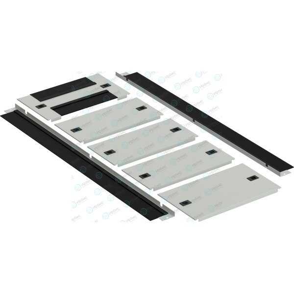 Панель оснащена двумя щеточными вводами высокой емкости расположенными вдоль боковых частей шкафа, на всю глубину с суммарным окном просвета 480 см², плюс дополнительно, один из модулей панели оснащен щеточными вводами с суммарным окном просвета 1200/1500 см², при необходимости увеличения емкости кабельного ввода имеется возможность замены любого глухого модуля панели на модуль с щеточным вводом.