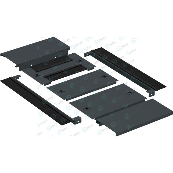 Используется для изолирования пространства в нижней части шкафа. Предотвращают попадание пыли во внутренне пространства шкафа а также повышают эффективность систем принудительного охлаждения. Элементы панели оснащены подпружиненными замками, что обеспечивает их простой и удобный монтаж без использования инструментов. Панель оснащена двумя щеточными вводами высокой емкости расположенными вдоль боковых частей шкафа, на всю глубину с суммарным окном просвета 480 см², плюс дополнительно, один из модулей панели оснащен щеточными вводами с суммарным окном просвета 1200/1500 см², при необходимости увеличения емкости кабельного ввода имеется возможность замены любого глухого модуля панели на модуль с щеточным вводом. Монтаж панели основания возможем уже после ввода кабеля в шкаф.