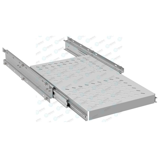 Полка имеет высоту 1U и оснащена выдвижным телескопическим механизмом на основе роликовых кассет.