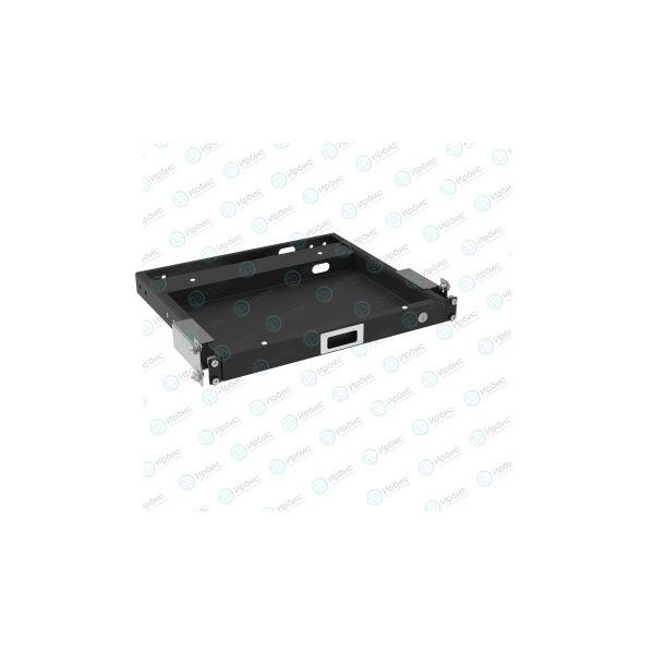 Полка имеет высоту 1U и оснащена выдвижным телескопическим механизмом на основе роликовых кассет, а также замком с индивидуальным ключом.