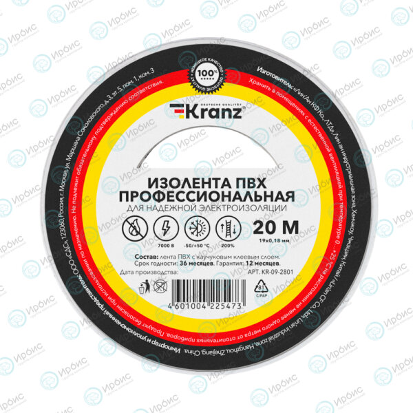 Профессиональная изоляционная лента KRANZ класса PREMIUM используется для электрической изоляции, цветной маркировки, соединения, защиты от внешних факторов и герметизации кабелей, проводов и шнуров. Находит широкое применение не только у профессионалов, но и в быту.
