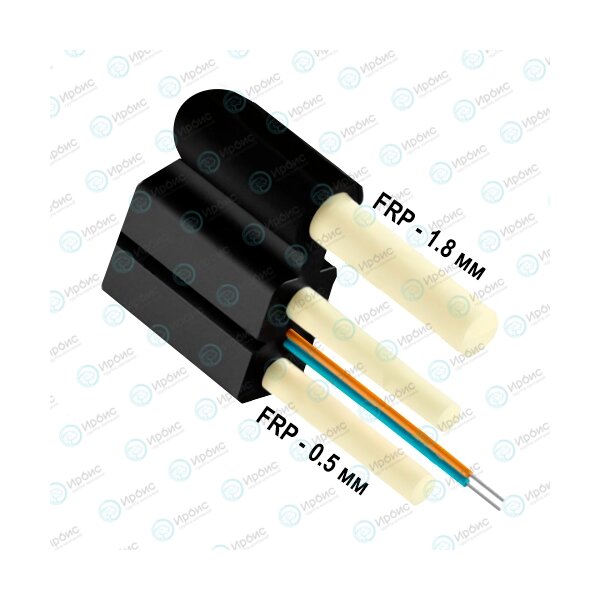 Ключевые особенности данного кабеля заключается в самонесущей конструкции с двумя силовыми элементами: стеклопрутками (FRP) или стальными проволоками (Steel), или комбинированный вариант FRP+ Steel.