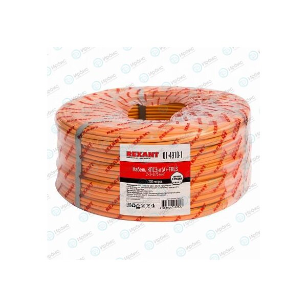 Кабель огнестойкий КПСЭнг(А)-FRLS 2x2x0,75, уп.200м, REXANT 01-4910-1
