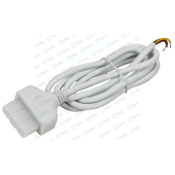 Кабель питания белого цвета с сечением проводников 3*0,75. Длина кабеля составляет 1,5 м. Применяется для подключения к сети линейных светильников серии 1010.