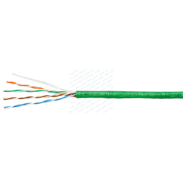 Кабель UTP 4 пары, Кат.5e, внутр., 0,50мм, PVC, зеленый, 305м, Cabeus UTP-4P-Cat.5e-SOLID-GN