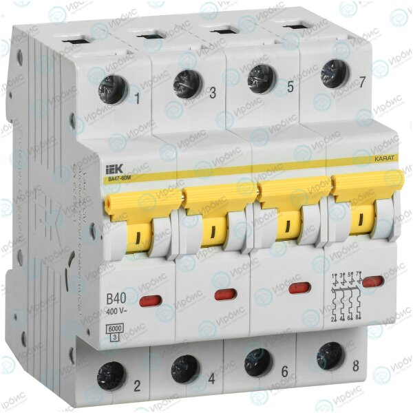 KARAT Автоматический выключатель ВА47-60M 4P B 40А 6кА IEK