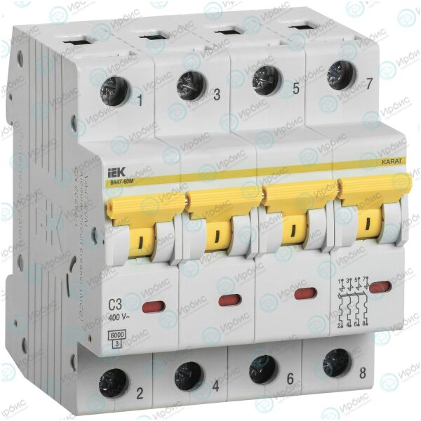 KARAT Автоматический выключатель ВА47-60M 4P C 3А 6кА IEK