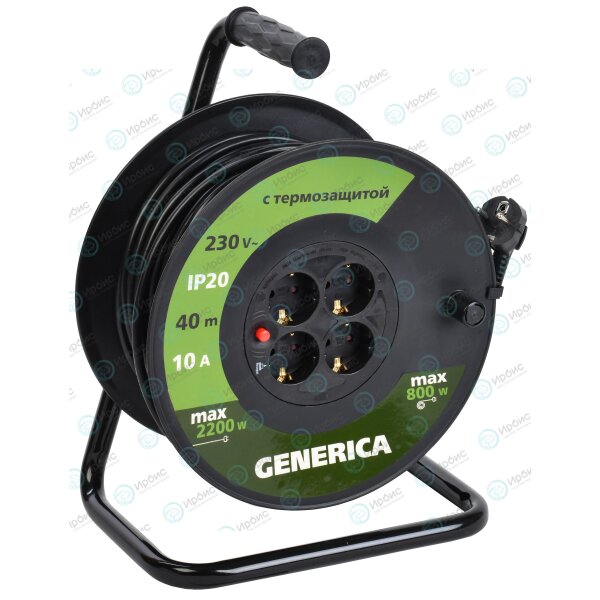 Катушка УК40 с термозащитой 4 места 2P+PE/40м 3х1,0мм2 GENERICA