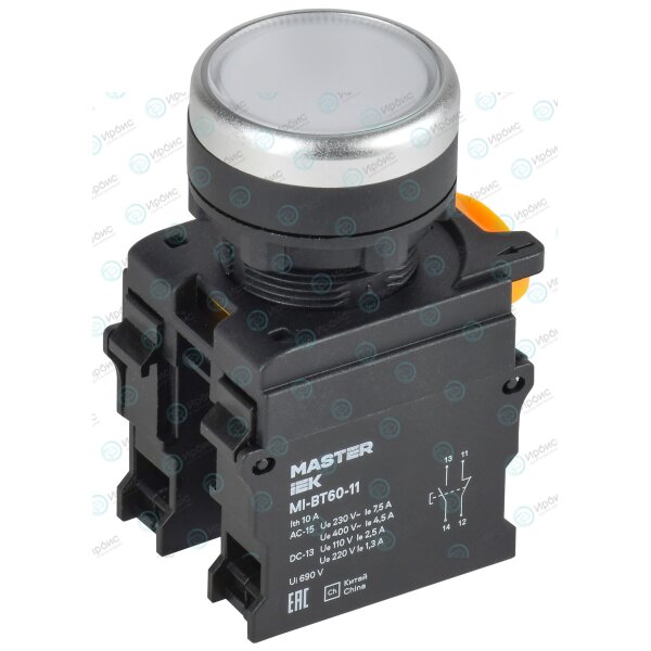 Кнопка d=22мм 1NO+1NC белая MASTER IEK