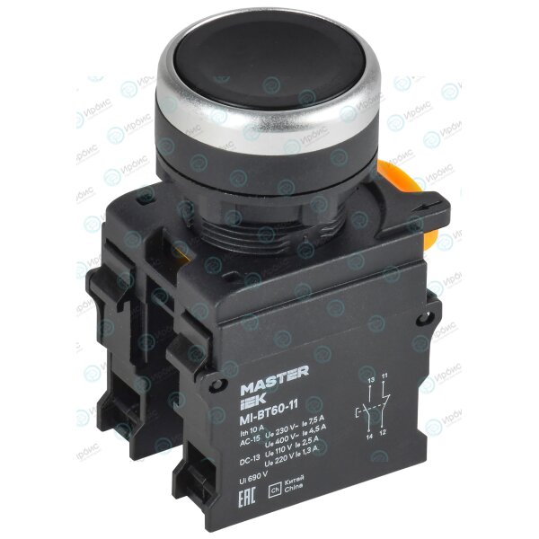 Кнопка d=22мм 1NO+1NC чёрная MASTER IEK