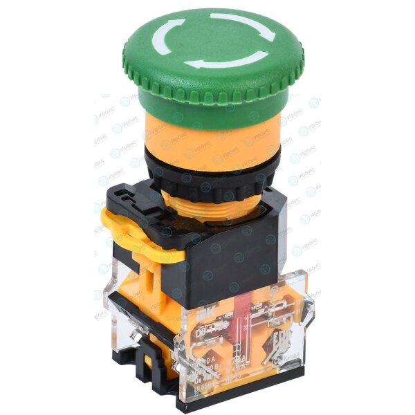 Кнопка D8-11ZS "Грибок" d=22мм 1NO+1NC поворотная с фиксацией зеленая IEK
