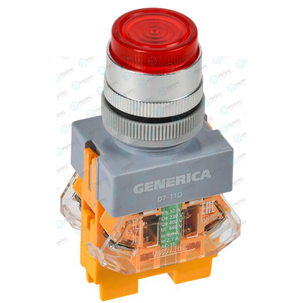 Кнопка управления D7-11D d=22мм 1NC+1NO с подсветкой красная GENERICA