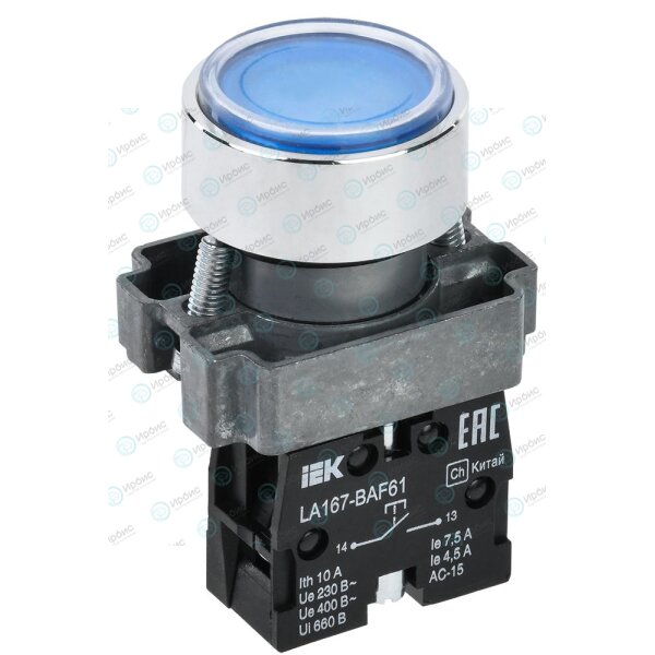 Кнопка управления LA167-BAF61 d=22мм 1NO синяя IEK