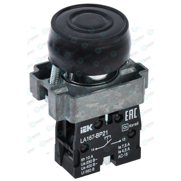 Кнопка управления LA167-BP21 d=22мм 1NO черная IEK