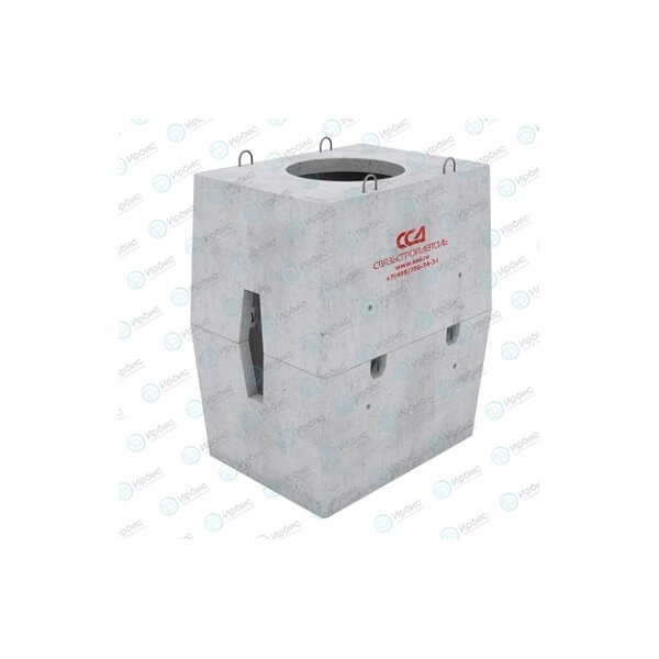Колодец имеет в сечении трапециевидную форму и состоит из двух элементов – верхней и нижней половин. На элементах колодца имеются петли для строповки при погрузке и разгрузке их с автомобиля, а также для опускания в котлован. Перекрытие верхнего элемента дополнительно армировано и содержит круглое отверстие диаметром 600 мм для формирования горловины с люком. В основании нижней половины колодца с внутренней стороны расположена прямоугольная ниша. При необходимости, ее стенку вырезают для создания дренажа. На торцевых стенках расположены сквозные отверстия для ввода двух труб с внутренним диаметром 100 мм.