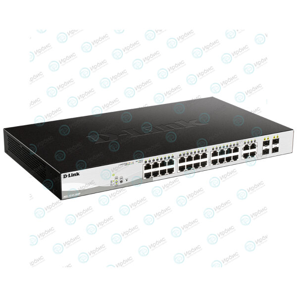 24 порта 10/100/1000Base-T с поддержкой PoE, 4 комбо-порта 100/1000Base-T/SFP