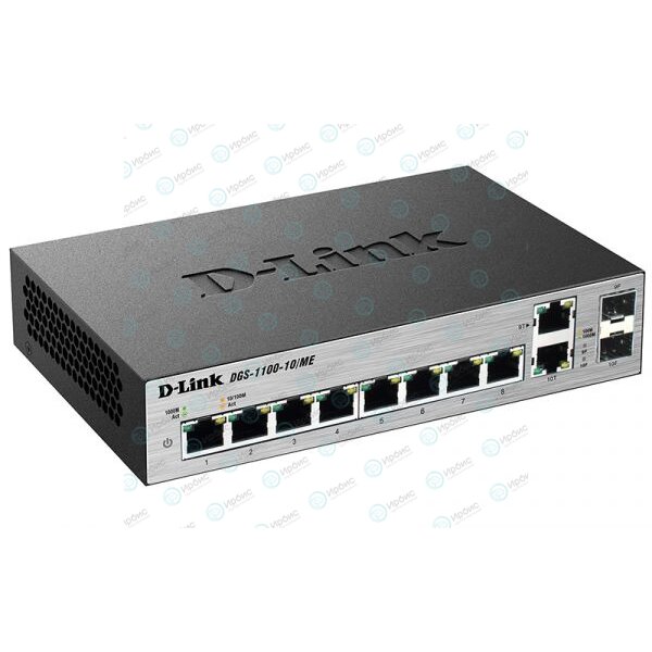 8 портов 10/100/1000BASE-T, 2 комбо-порта 100/1000 Base-T/SFP