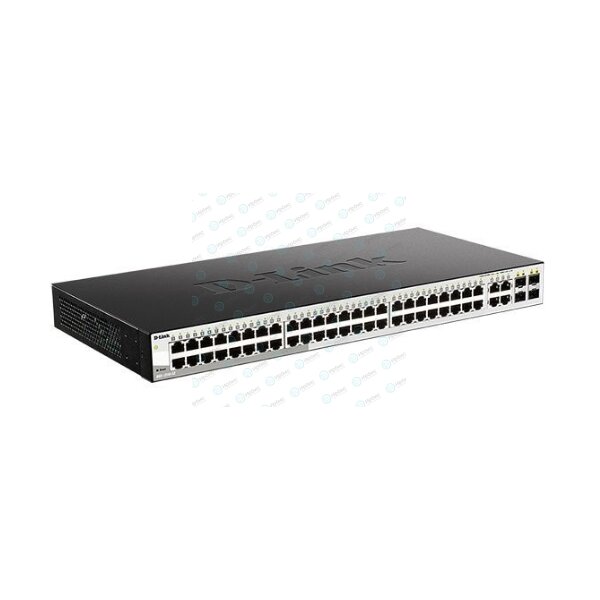 Коммутатор DGS-1210-52, кабель питания, фиксатор для кабеля питания, 2 крепежных кронштейна для установки в 19-дюймовую стойку, 4 резиновые ножки, комплект для монтажа, краткое руководство по установке
