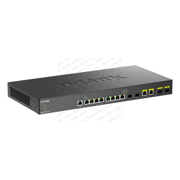 Коммутатор DXS-1210-12TC, кабель питания, консольный кабель с разъемом RJ-45, 4 резиновые ножки, 2 крепежных кронштейна для установки в 19-дюймовую стойку, краткое руководство по установке