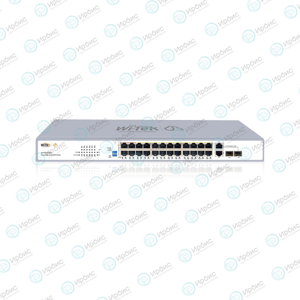 24 порта 10/100 Мбит/c PoE RJ45 (Downlink); 2 комбинированных портов 1000 Мбит/c SFP (Uplink)