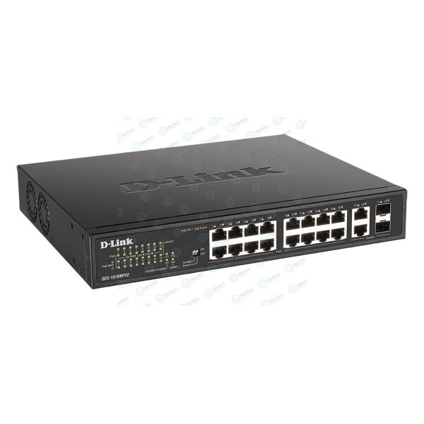16 портов 10/100Base-TX с поддержкой PoE, 2 комбо-порта 100/1000Base-T/SFP