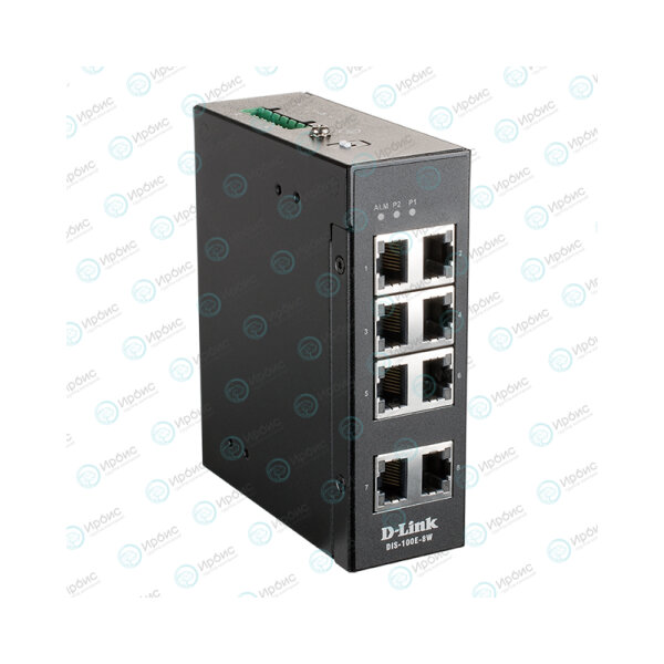 8 портов 100Base-TX, Релейный выход для оповещения о сбое питания (максимальная коммутируемая нагрузка: 1А /48В DC)