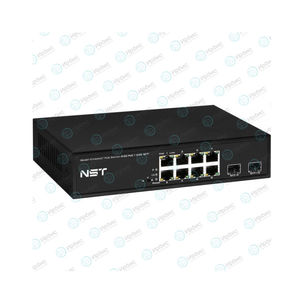 Порты: 8 х GE (10/100/1000 Base-T) с поддержкой PoE (IEEE 802.3af/at), 2 x GE SFP (1000 Base-T)
