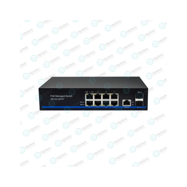 Порты: 8 х GE (10/100/1000 Base-T) с поддержкой PoE (IEEE 802.3af/at), 2 x GE SFP (1000 Base-T)