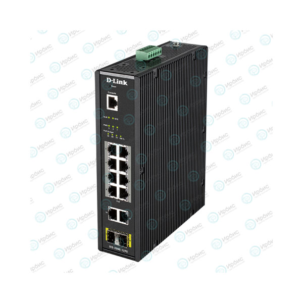 10 портов 10/100/1000Base-T (8 портов с поддержкой PoE), 2 порта 1000Base-X SFP, Консольный порт с разъемом RJ-45, Релейный выход для оповещения о сбое питания (максимальная коммутируемая нагрузка: 1 А / 24 В DC)