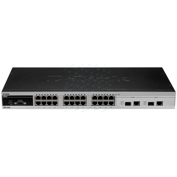 24 порта 10/100BASE-TX, 2 комбо-порта 1000BASE-T/MiniGBIC (SFP)