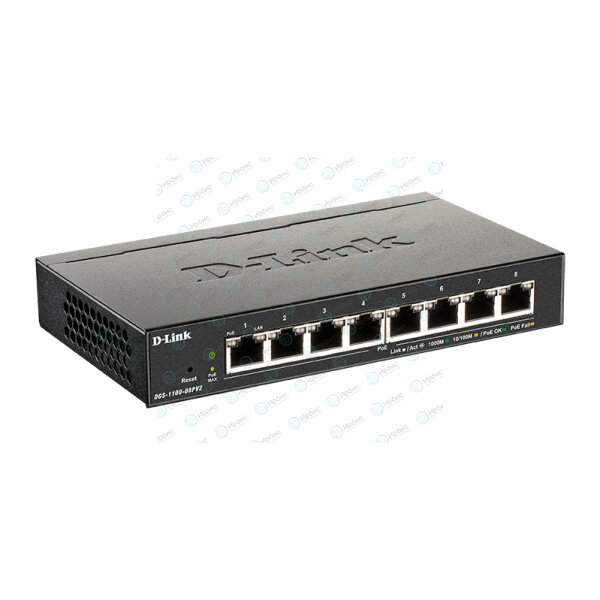 Коммутатор DGS-1100-08PV2, адаптер питания, комплект для крепления на стену, 4 резиновые ножки, краткое руководство по установке