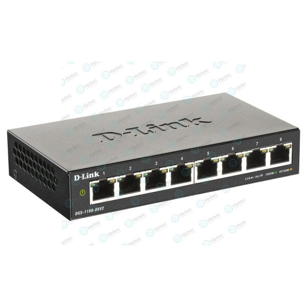 Коммутатор DGS-1100-08V2, адаптер питания. комплект для монтажа на стену, 4 резиновые ножки, краткое руководство по установке