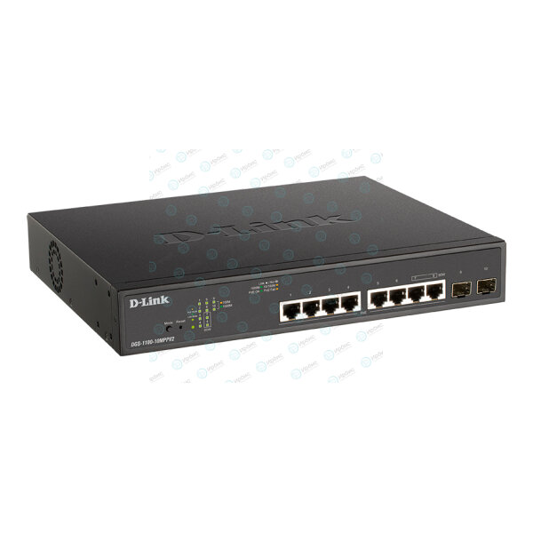 8 портов 10/100/1000Base-T с поддержкой PoE, 2 портами 100/1000Base-X SFP