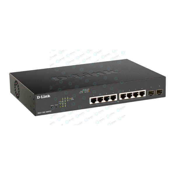 8 портов 10/100/1000Base-T с поддержкой PoE, 2 портами 100/1000Base-X SFP