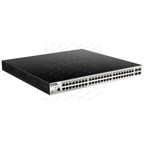 48 портов 10/100/1000Base-T с поддержкой PoE, 4 порта 1000Base-X SFP, Консольный порт с разъемом RJ-45