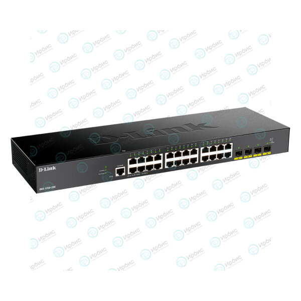 24 порта 10/100/1000Base-T, 4 порта 10GBase-X SFP+, Консольный порт с разъемом RJ-45