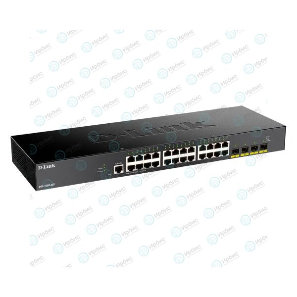 24 порта 10/100/1000BASE-T; 4 порта 10GBase-X SFP+; консольный порт с разъемом RJ-45