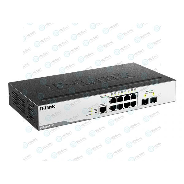8 портов 10/100/1000Base-T; 2 порта 1000Base-X SFP; консольный порт с разъемом RJ-45