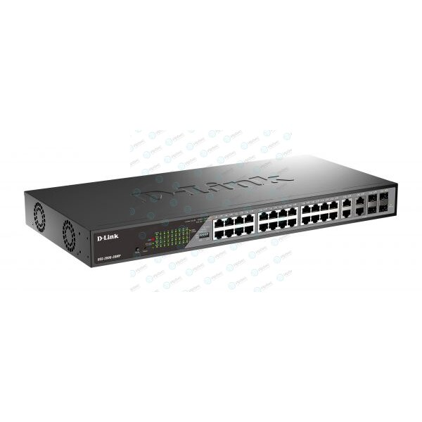 24 порта 10/100/1000Base-T с поддержкой PoE, 4 комбо-порта 100/1000Base-T/SFP, Сигнальный порт с разъемом RJ-45