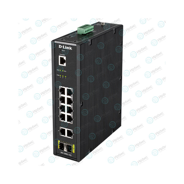 10 портов 10/100/1000Base-T, 2 порта 1000Base-X SFP, Консольный порт с разъемом RJ-45, Релейный выход для оповещения о сбое питания (максимальная коммутируемая нагрузка: 1А / 24 В DC)