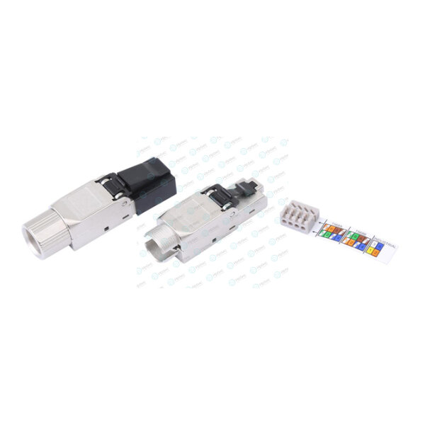 Разъем полевой оконцовки RJ-45 (8P8C) под витую пару, для одножильного кабеля, toolless, категория 6A, экранированный, накручивающийся хвостовик, IDC.