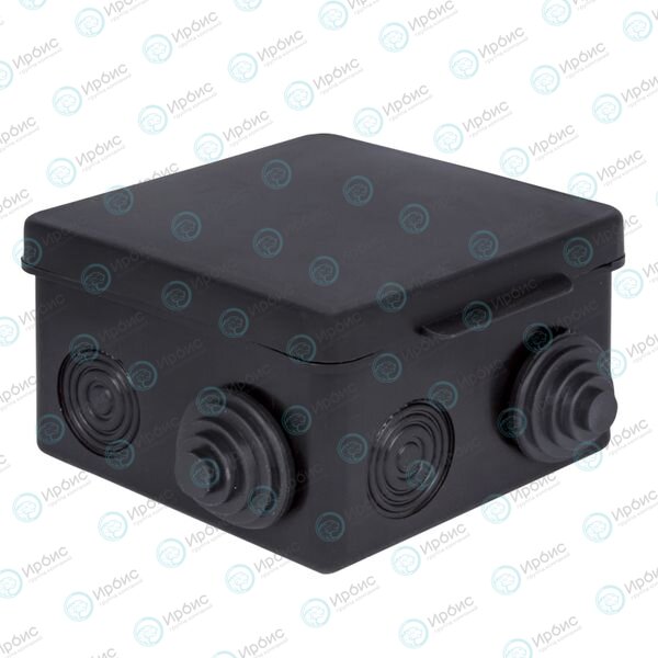 Коробка распределительная КМР-030-031 с крышкой (80x80x50), 7 мембр. вводов чёрная IP54 розн. стикер